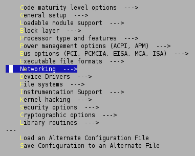 Within the utility, load the existing .config file as a starting point. Navigation is straightforward, with a legend available for guidance. For instance, we can explore the Networking category.