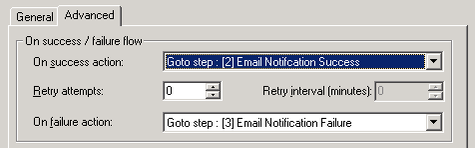 Finally, edit the step labeled "Email notification failure" and set its properties as follows: