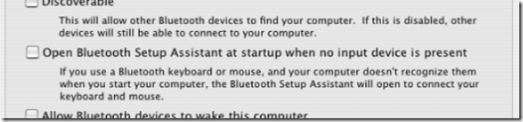 You should now be able to connect to your Mini from any computer (Windows, Linux, etc.) using a VNC client, provided you know the Mini’s IP address. Successful connection allows you to disconnect the mouse and keyboard and control the Mini remotely. However, Macs require input devices to complete the boot process. Without detected input devices, they continuously scan for Bluetooth connections, potentially interrupting the boot sequence. This can be disabled in System Preferences. Go to the "Bluetooth" section and uncheck "Open Bluetooth Setup Assistant at startup when no input device is present". This will prevent the setup wizard from running indefinitely during startup.